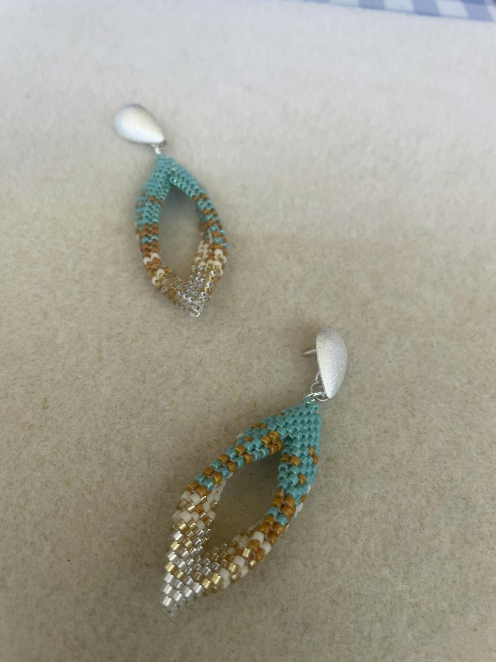 Habiendo hecho el curso de peyote doblado me animé a hacer este modelo en degrade y fue muy fácil con el patrón que me enviaron. Pensé que sería más difícil, pero me resultó facilísimo con las instrucciones que enviaron. Quedó precioso!