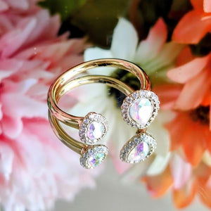 Anillo 14K Ajustable Swarovski Engarzado Gota