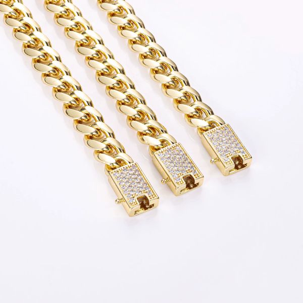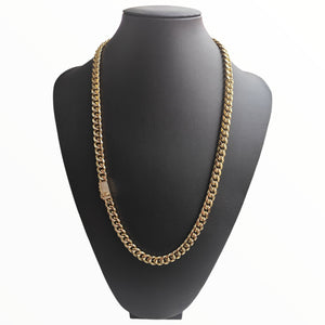 Gracias al proceso de Oro Laminado 14K, esta cadena ofrece la apariencia, el peso y la sensación del oro macizo, pero con una relación calidad-precio inigualable. Ideal para complementar atuendos casuales, de fiesta o para regalar a ese hombre o mujer que ama el estilo streetwear y la joyería llamativa.
